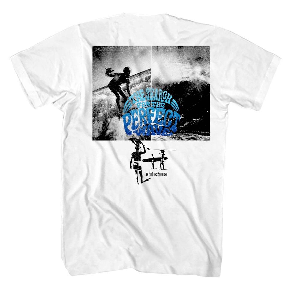 The Endless Summer is more than just a surf documentary film from 1966 directed, produced, edited and narrated by Bruce Brown. The film follows surfers Mike Hynson and Robert August on a surfing trip around the world. They travel to the coasts of Australia, New Zealand, Tahiti, Hawaii, Senegal Ghana, Nigeria and South Africa in a quest for new surf spots while introducing locals to the sport along the way. It has become a timeless masterpiece that continues to capture the imagination of every new generation of surfer and so a sequel was made in 1994. This classic Bruce Brown Film is represented on this epic graphic Endless Summer Sunset T-Shirt, designed to look vintage like it came from a surf shop in the 1950’s.