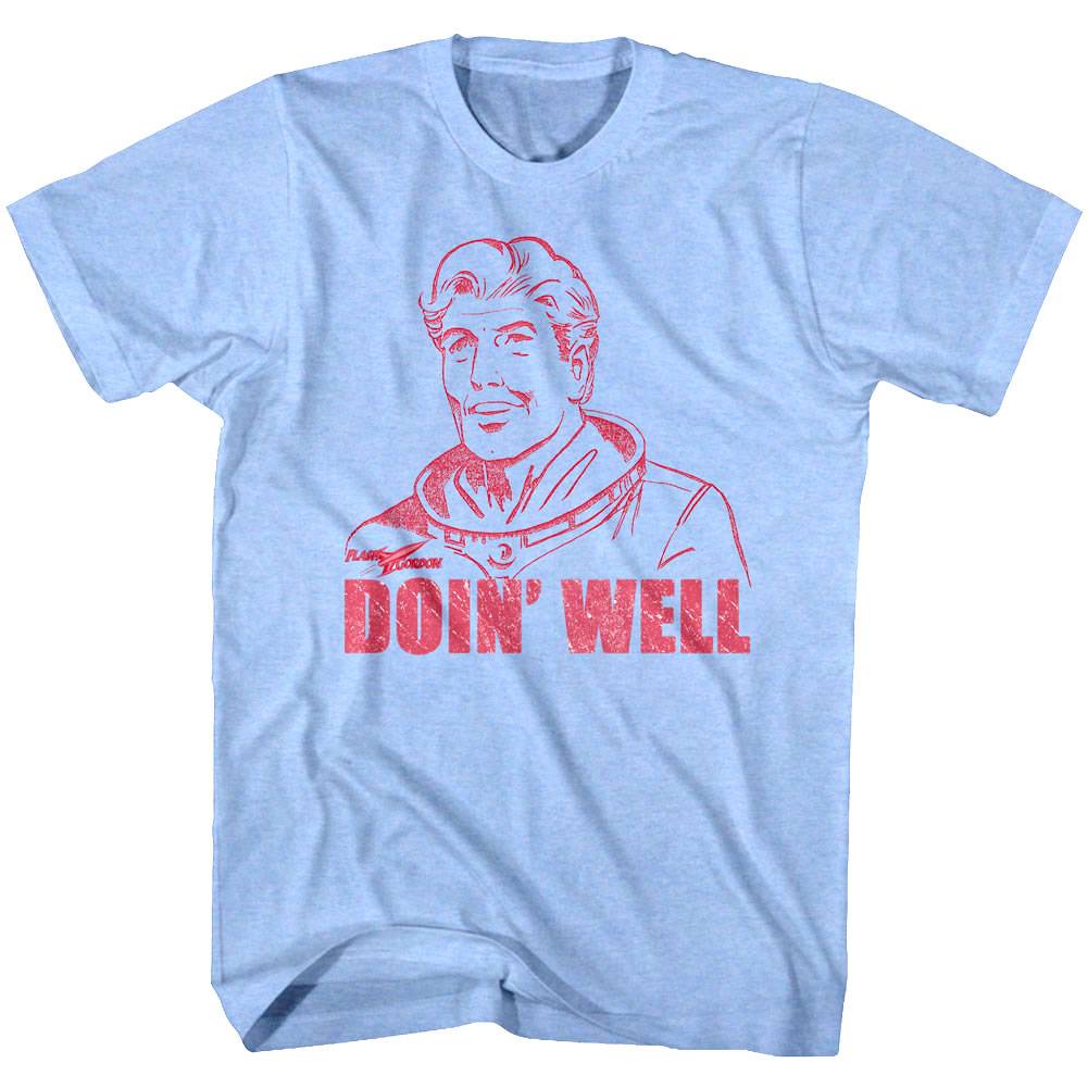 Who can save you now pathetic earthlings…. Flash AAAAA-AHHHH! A space opera from a comic strip to a cartoon then a movie, a Queen song and multiple TV series – Flash Gordon is an enduring character (over 90 years old now). Flash travels the universe battling the evil villain Ming the Merciless from planet Mongo. Team Flash or Team Ming, you can choose with this intergalactic graphic Flash Gordon Doin Well t-shirt.