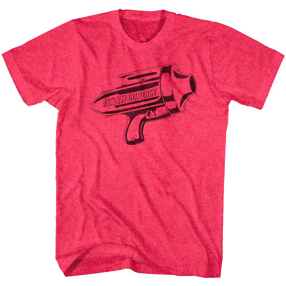Who can save you now pathetic earthlings…. Flash AAAAA-AHHHH! A space opera from a comic strip to a cartoon then a movie, a Queen song and multiple TV series – Flash Gordon is an enduring character (over 90 years old now). Flash travels the universe battling the evil villain Ming the Merciless from planet Mongo. Team Flash or Team Ming, you can choose with this intergalactic graphic Flash Gordon Ray Gun t-shirt.