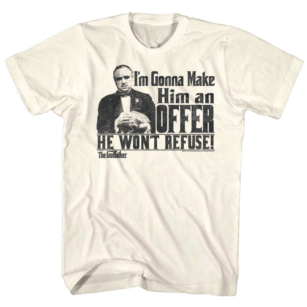 The legendary crime trilogy, The Godfather, was the masterpiece directed by Francis Ford Coppola and inspired by the novel by Italian American author Mario Puzo enjoy cult status among Mafia movie fans. The Godfather films follow the trials of the Italian American mafia Corleone family whose patriarch, Don Vito Corleone played by Marlon Brando, rises to be a major figure in American organized crime. The Don’s son, Michael Corleone played by Al Pacino, wants to stay out of the family business but is gradually drawn in, his journey goes from New York to Sicily and back again. So leave the cannoli and take this vintage style Godfather An Offer He Won’t Refuse t-shirt, this is an offer you cannot refuse