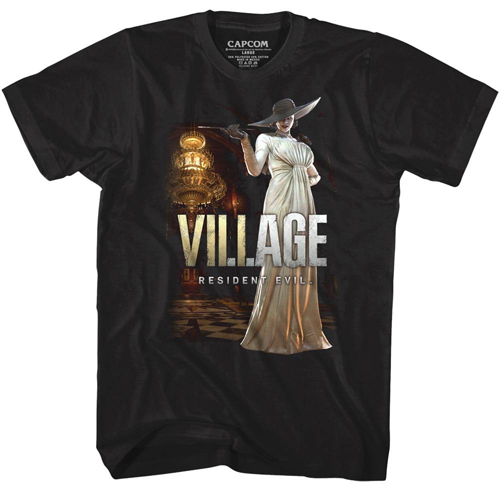 Capcom had another massive hit when it released the first Resident Evil video game in 1996, this zombie shoot ’em up was one of the first survival horror games. The game takes place in a mansion overrun with zombies and other monsters, yikes. The Resident Evil franchise has grown to numerous sequels as well as comics, books, a movie and t-shirts too. Intense horror fans will love this zombie-inspired graphic Resident Evil Village Inside Castle Dimitrescu t-shirt.